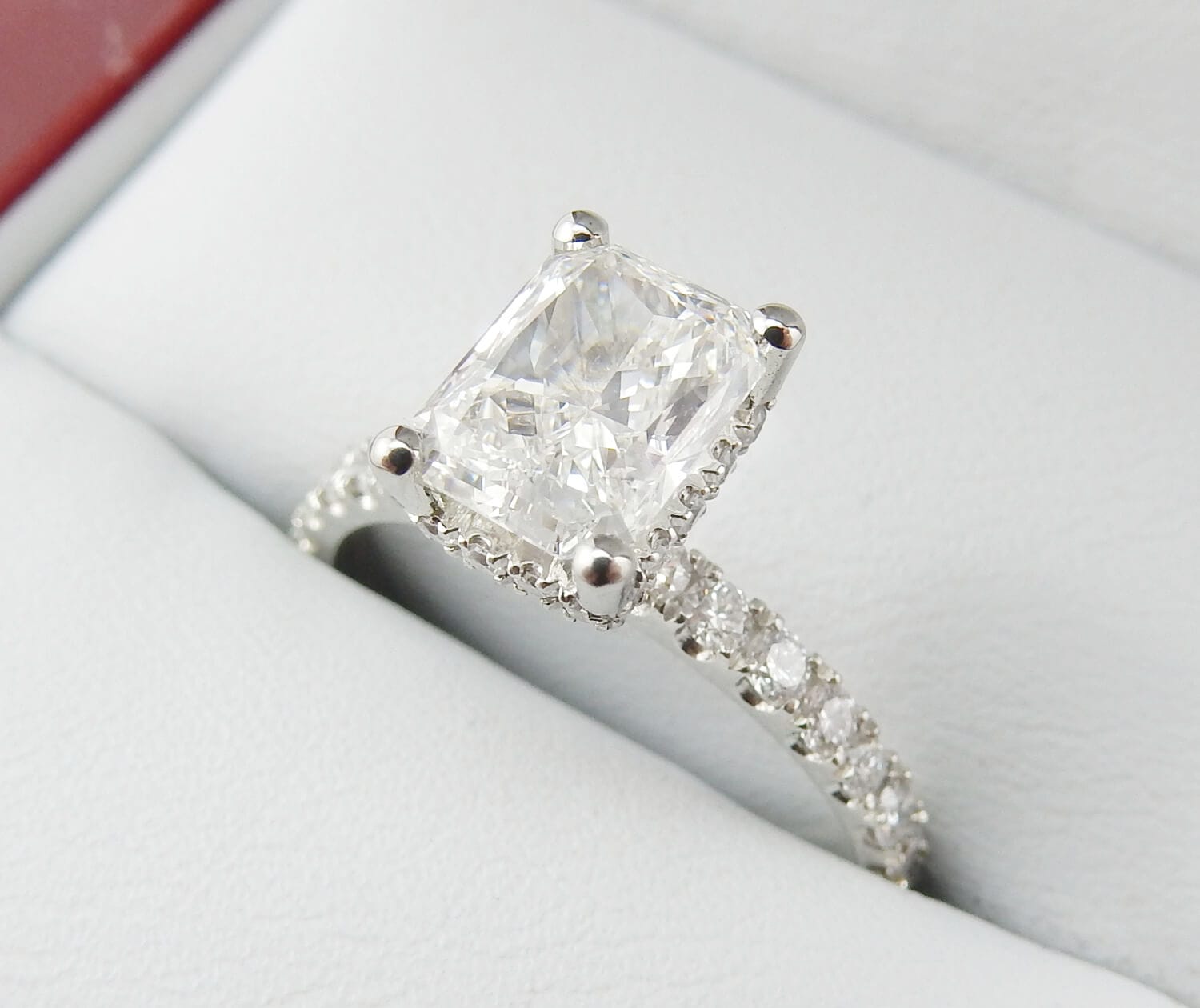 19K White Gold 1.50 CTW Radiant Cut Pavé Band Diamond Engagement Ring